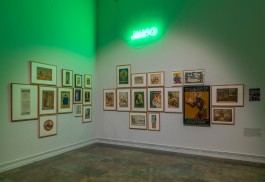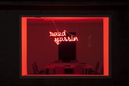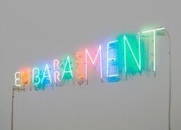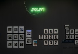 An installation of neon signs spelling out words that have become paranoid signifiers of Islam in the West. Words that refer to phenomena as diverse as food, clothing, and religious belief have all come to reside within one and the same category. Names or terms of objects and activities in daily life have become catalysts of a new kind of exoticism. This playful work seeks to illustrate how Islam is sometimes viewed, labeled, and branded. The neon-lit words, which look like shop signs, are in English and not Arabic, creating a bright pop aesthetic while simultaneously highlighting deeply held prejudices.