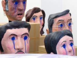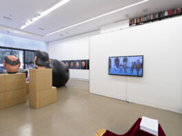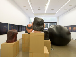 In this exhibition, the inflatable Shushu, the giant head masks based on the portraits of his theater troupe, and other memorabilia from the performance is restaged in a museum-like display, highlighting the power of these objects as the remnants of a ritual that once existed, much like a funeral. By taking them out of their original context, the objects are now new subjects to be perused and studied up close, manifesting a different future and new possibilities through them.