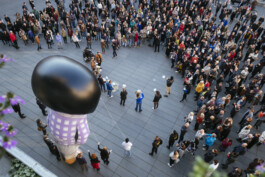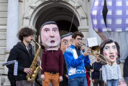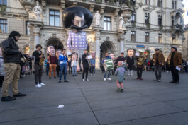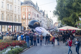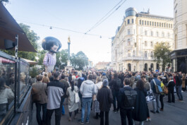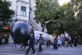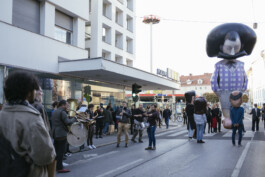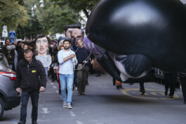 Fast forward to 2022, under the shadow of war that had revisited the European continent, the artist Raed Yassin decided to reenact the parade on the streets of Graz, Austria, by creating a kind of funerary procession that happens only once in the spirit of the original work. Here, Shushu is recreated as a giant inflatable parade float, looking as if he is comatose and in between a place of life and death, mimicking the current situation of Lebanon as a failed state. The music of the parade is based on Shushu’s political and children’s songs of the time, but they are transformed into a New Orleans style funerary score.
