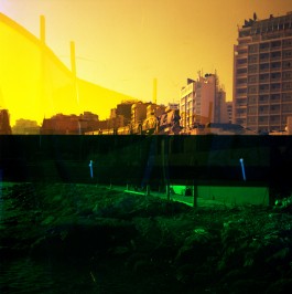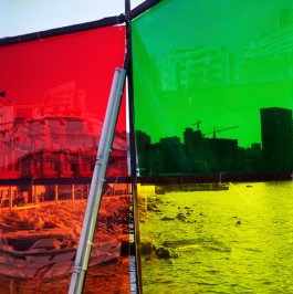 Untitled is a photographic series that frames the city through its architectures of artifice. Colored panels and construction site barriers become the windows to a fantastical landscape beyond, or even in spite, of a massive program of neoliberal urban gentrification. A view of the sea becomes imbued with a green tint and a scene of rubble becomes distorted and oneiric as a city is laid out in saturated colors, simultaneously radiant and melancholic.